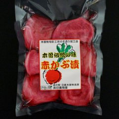 木曽の赤かぶ(王滝かぶ)を塩漬けにした伝統の味。塩、砂糖、酢のみを使っています。